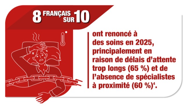 - l'allongement des délais de consultation, pouvant entraîner un renoncement aux soins ;